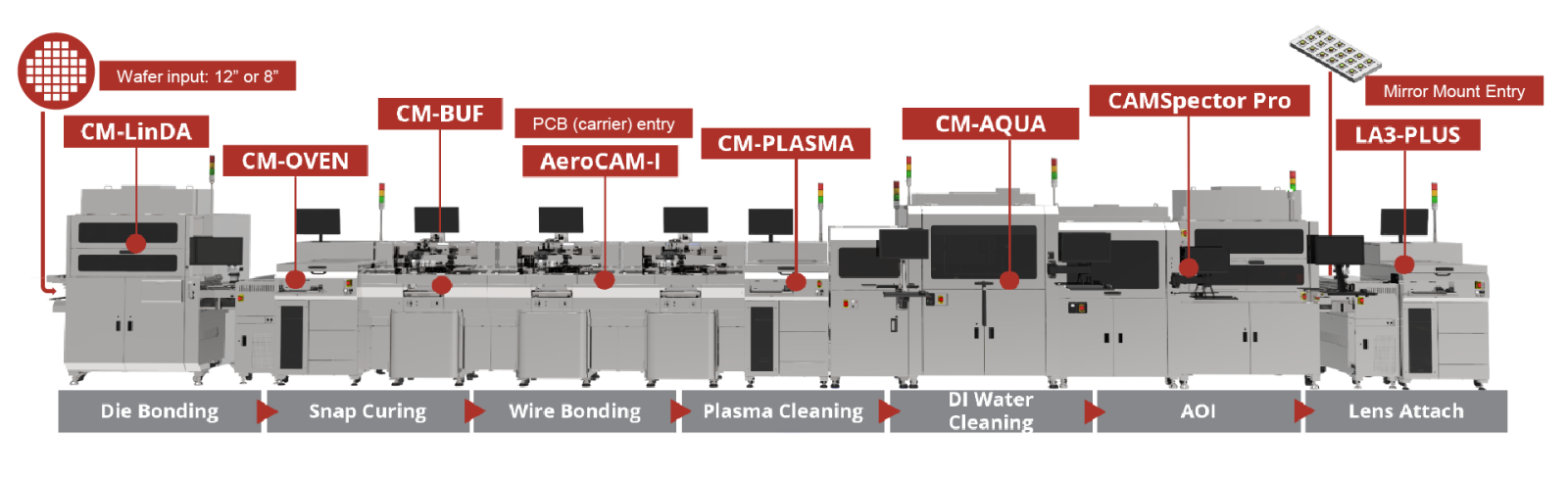 CIS-InLine 是一套处理 CMOS 图像传感器的智能联机系统,适用于广泛的产品。本联机系统为您提供最精确的解决方案,结合其创新的主动式镜座对位解决方案的经验,以最低的拥有成本和最高的生产率实现最佳光学性能。 ASMPT 了解在联机组装中清洁度的重要性,通过集成 HEPA / ULPA 过滤器和清洁模组的使用来确保生产环境的超高洁净度。